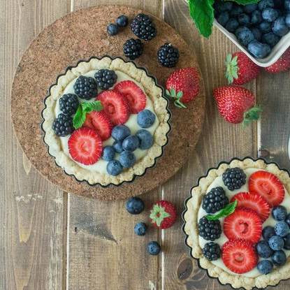 To assemble:Portion the Lemon Custard between the 4 tart shells. Top with your favorite berries and enjoy!