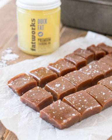 Take your favorite salted caramels up a notch by adding a bit of savory Fatworks Duck Fat, a.k.a. The Divine Ms. D. It adds a bit of "ooh la la" flavor to balance out the natural sweetness of honey and coconut palm sugar. These sweet treats from this duck fat caramels recipe are also dairy-free and sure to please your whole family.