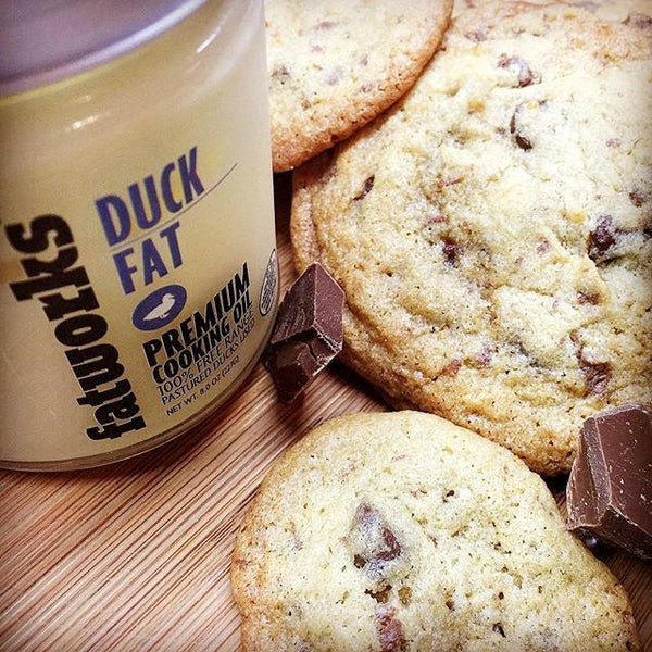The best way to add a little Ohh-La-La to your cooking is to cook with Cage Free All Natural Duck Fat. Just mention "Duck Fat fries" and people lose their minds. Besides fries, our duck oil for cooking is great for confit-style dishes, roasted veggies, and savory pies. You can even spread it on a "quacker" with a little sea salt. We source specially bred ducks that are raised to forage on land rather than water, raised with room to roam, socialize, run around, preen their feathers, and be just about as ducky as any duck could wish. It should be noted that almost ALL ducks raised in the U.S. are cage-free and are by law hormone and antibiotic-free. What separates our Cage-Free All Natural Duck Fat from our competitors is our small batch, kettle rendering, and our advanced fine-filtering system creating the purest, BEST TASTING cage free duck fat on the market! To make sure that we provide the healthiest duck fat made our poultry fats contain very small amounts of Organic Rosemary Extract. Rosemary has natural antioxidant properties keeps the perodixe levels low which is good because we all know that one of the biggest reasons to eat real fat is to eat fats that have lower oxidation.